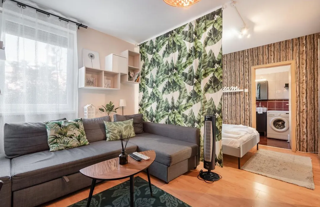 Az 1 szobás Green Lush Apartment Budapest a VIII. körzetben van, az II. Janos Pal papa ter metróállomástól csaknem 10 perc sétára. A 31 m²-es apartman 3 km-re található a Nyugati vasútállomástól és közvetlen szomszédságra a Muzsikus ciganyok parkja buszpályaudvartól.